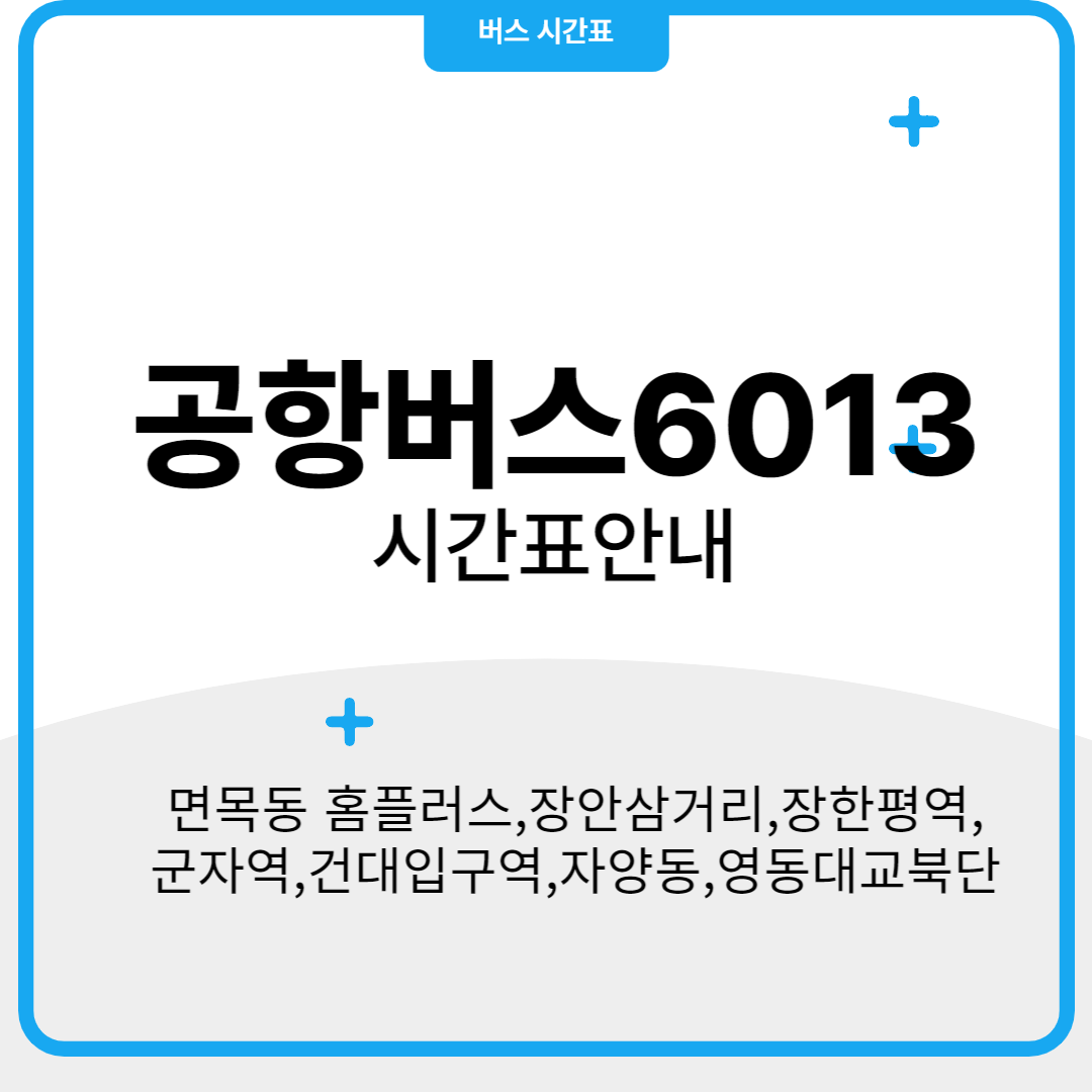 공항버스 6013번은 중랑구 면목동에서 출발하여 장한평역, 군자역, 어린이대공원역, 건국대학교를 거쳐 인천국제공항까지 운행을 합니다.