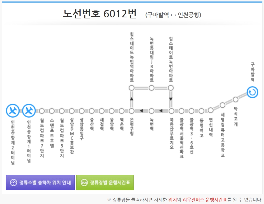 6012번(구파발역 ↔ 인천공항) 정류소별 위치