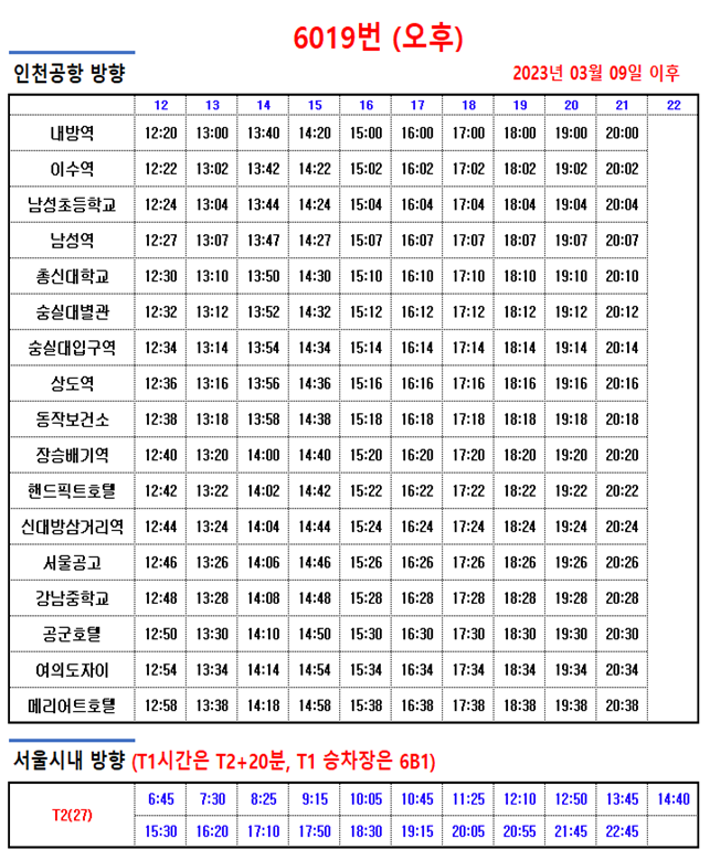2023.03.01 - [생활정보] - 공항버스6012 시간표와 승강장 안내